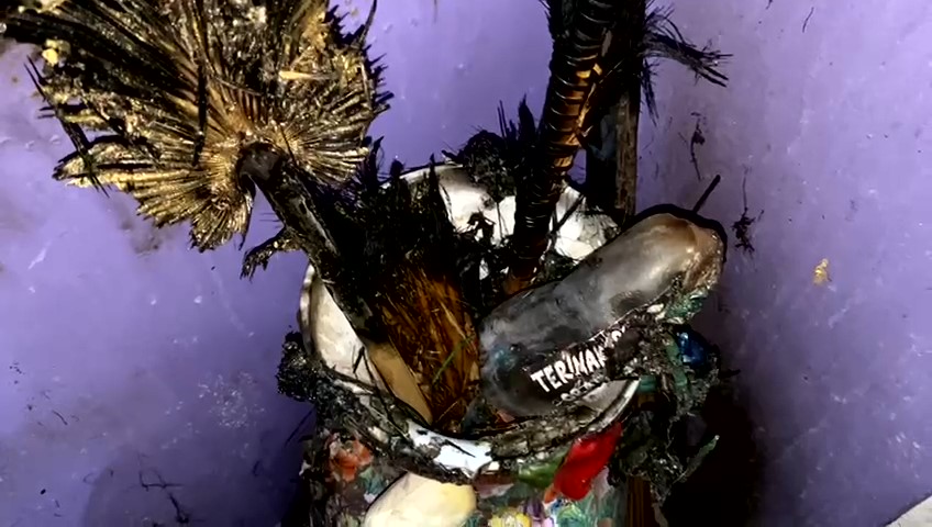 Di dalam guci juga ditemukan botol plastik yang masih tersisa bersama sumbu. Diduga benda ini merupakan bom molotov yang dilempar oleh seseorang yang tak dikenal.
