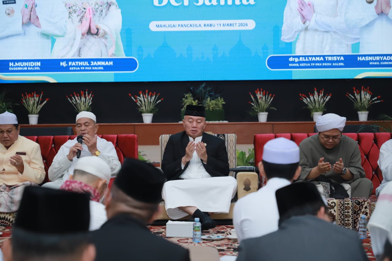 Banjarmasin – dutatv.com, Usai melaksanakan pelantikan pejabat pimpinan tinggi pratama di lingkungan Pemprov, Gubernur Kalsel H Muhidin bersama istri, Ketua TP PKK Hj Fathul Jannah, melangsungkan silaturahmi dan buka puasa bersama para 21 Ramadan 1447 hijriah, Rabu (11/03/2026) di Mahligai Pancasila Banjarmasin.