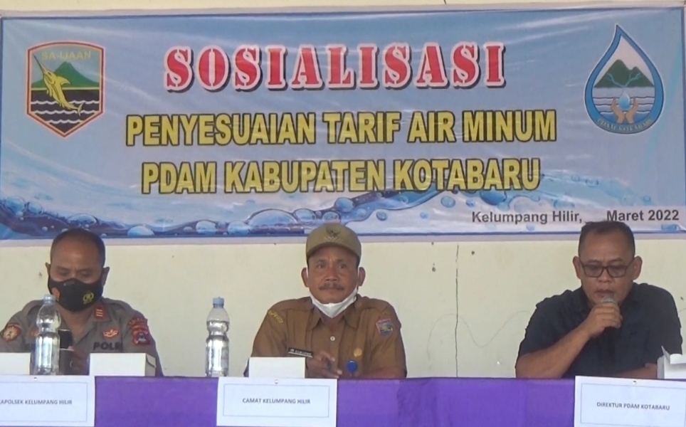 Kotabaru,DUTA TV –PDAM Kotabaru melakukan sosialisasi kenaikan tarif air minum kepada pelanggan Spam IKK serongga, di balai desa Tegal Rejo, Kecamatan Kelumpang Hilir, Selasa (01/03/2022). Spam IKK Serongga merupakan satu dari lima Spam IKK yang dimiliki PDAM Kotabaru.