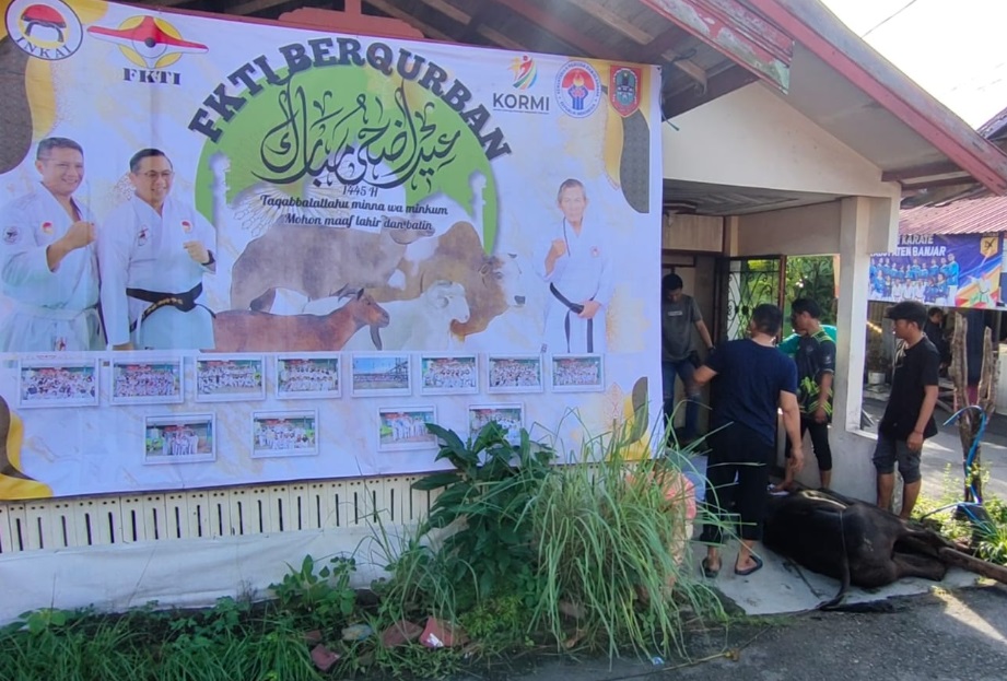 Banjarmasin, DUTA TV — Pengurus dan anggota Federasi Karate Tradisional Indonesia (FKTI) Kalimantan Selatan menggelar pemotongan hewan kurban, di salah satu rumah pengurus, Selasa pagi.