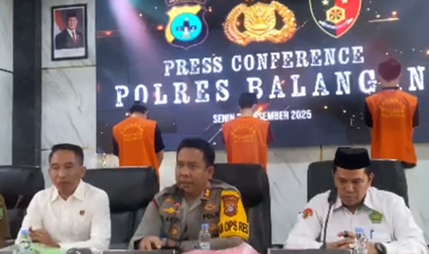 Keduanya tampak pasrah dan tertunduk saat digiring ke salah satu ruangan di Mapolres Balangan. Mereka ditetapkan sebagai tersangka setelah pihak kepolisian mendapatkan alat bukti yang cukup dan menemukan adanya perbuatan melawan hukum.