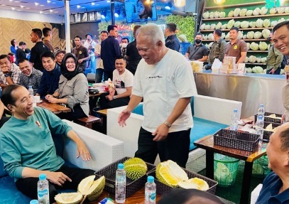 “Tadi sore, memang saya janjian. Menteri, dengan Pak Gub, dan lain-lain, kalau menang, mau saya traktir di Sibolang untuk makan durian bareng-bareng. Jadi karena menang, harus neraktir. Janjiannya seperti itu,” tutur Jokowi.