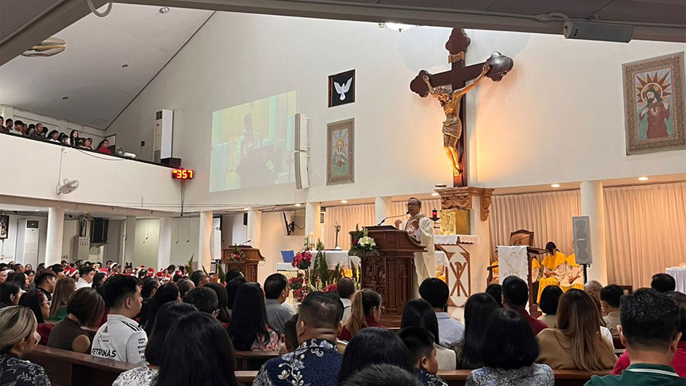 Pemimpin misa, Romo RD Simon, menekankan pentingnya peran umat Katolik tidak hanya dari Paroki Veteran, tetapi se-Banjarmasin untuk bahu-membahu membantu sesama.