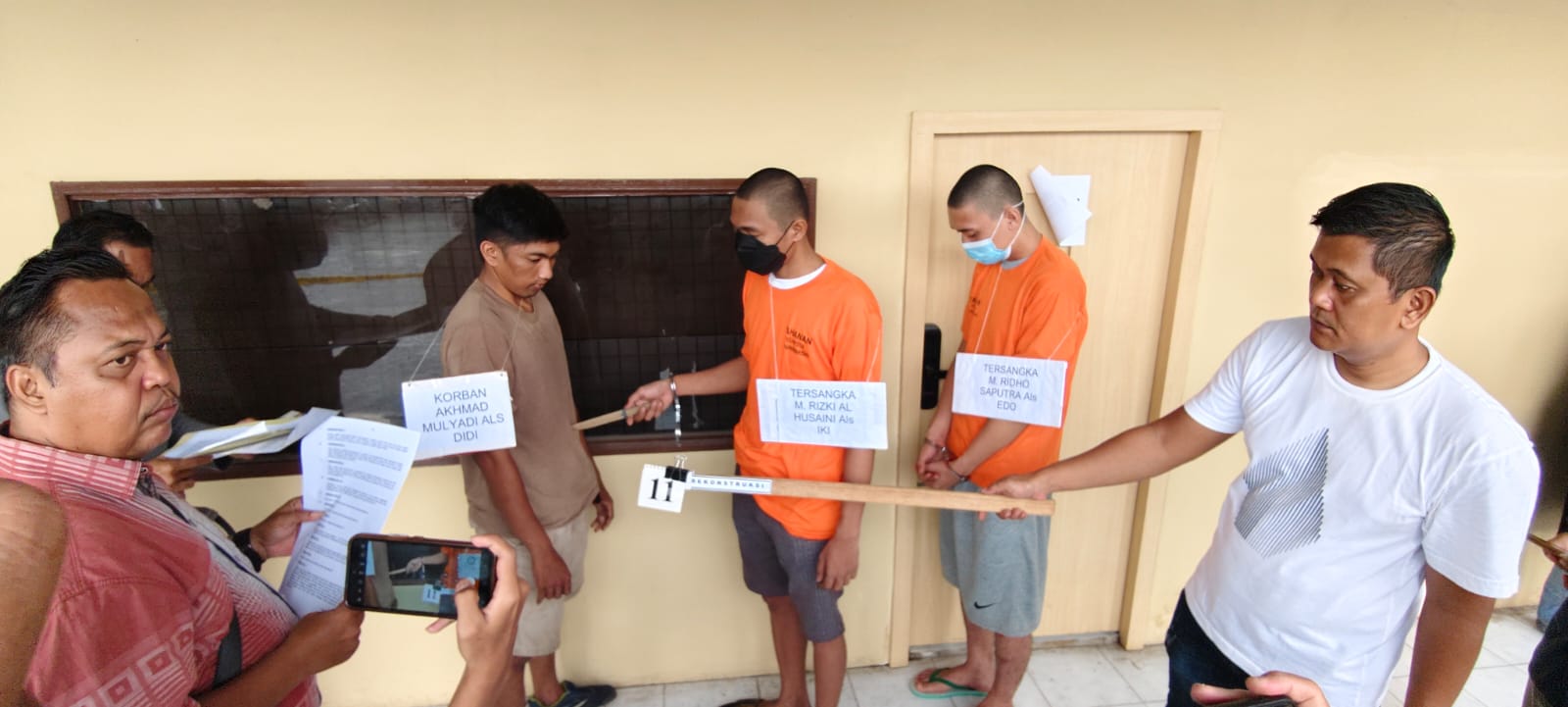 Banjarmasin, DUTA TV — Polsek Banjarmasin Barat menggelar reka adegan kasus pengeroyokan yang diduga dilakukan dua kakak beradik, Risky dan Ridho, hingga menghilangkan nyawa Akhmad Mulyadi, di Mapolsek Banjarmasin Barat, Selasa siang.