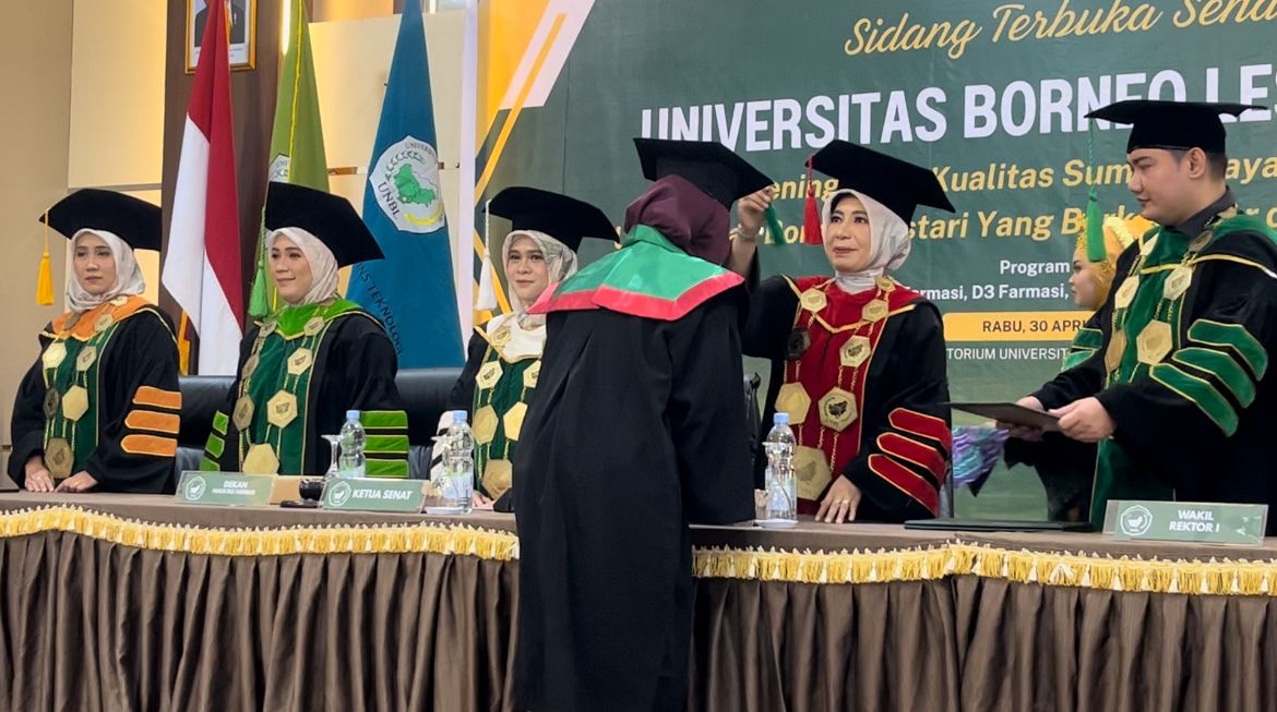 “Pertama alhamdulillah pada hari ini UNBL telah meluluskan 52 orang terdiri dari 44 prodi S1 farmasi 4 orang D3 farmasi 4 orang dari D3 analis kesehatan para wisudawan ini telah dibekali ilmu pengetahuan dan keterampian dan dibekali kecerdasan intelektual emosional dan spiritiual sehingga mereka bisa mengabdikan dirinya dan lebih berkarya lagi supaya bermanfaat utk masyarakat,” kata Dr. Ir. Neni Widaningsih, S.PT., M.P, Ipu, Rektor Universitas Borneo Lestari.