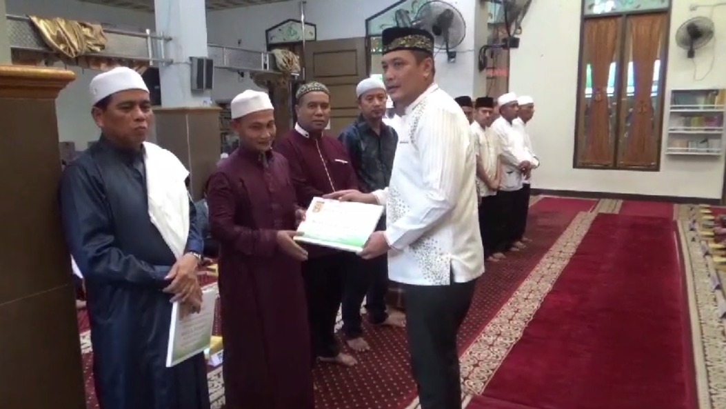 Pada kesempatan kali ini Aditya menyerahkan bantuan dana hibah keagamaan untuk masjid Al Mubarakah sebesar Rp50 juta, serta untuk dua musholla dibantu masing-masing Rp10 juta.