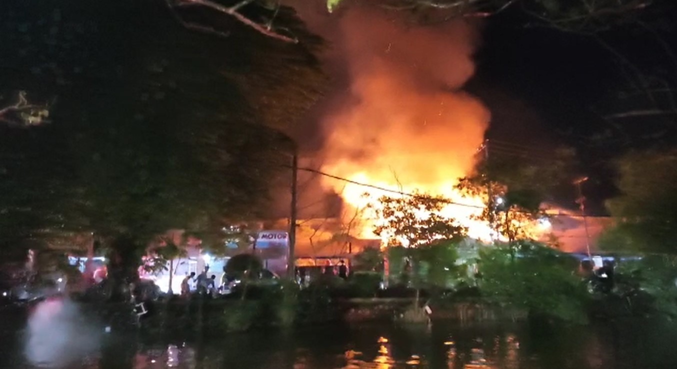 Api terlihat sangat cepat menghanguskan rumah yang juga merupakan apotik, tempat isi ulang air minum dan warung makan.